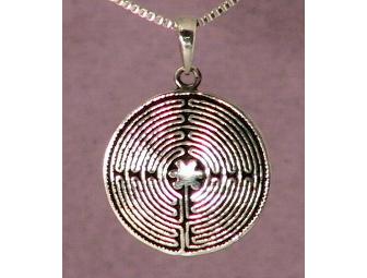 Sterling silver Chartres Labyrinth Pendant. 7/8 inch (22mm) diameter, with 18" sterling chain.