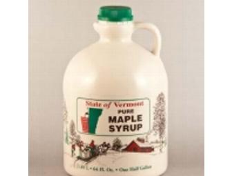 A half gallon of 100% pure maple syrup, produced by the kind folks at Joey's Junction Bakery and Cafe in Highgate, Vermont.
