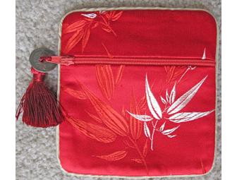 Coin Purse with Zipper "Coin" Closure - Red with Bamboo