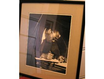 This 20 x 24 inch black and white photo of Thelonious Monk, one of America's great jazz composers and pianists, was captured by renowned jazz photographer Herman Leonard in New York in 1948.
