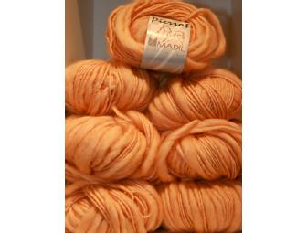 Love this yarn! Really really EL OH VEE EEE LOVE it. I am pretty confident that you will as well. What do we have? Well we have SEVEN perfectly peachy skeins of Madil Pierrot yarn.