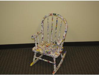 Durin Hendricks is in the 5th grade at A.I.S West. He thought, "hey why don't I do splatter paints"... plus splatter paints annoy his grandpa! And then after he was done it reminded him of an art studio after painting something so he decided to call his chair Art Studio "After" with emphasis on "After."