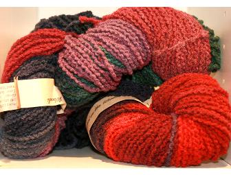 "Pizazz" by Wool in the Woods is a boucle yarn. Made of 100% wool, it can be hand washed and dried flat. This bulky weight yarn is available in a variety of solid and variegated colors. Suitable for making hats, scarves, sweaters, jackets, vests and shawls.