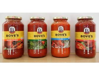 A selection of Bove's Sauces. Four 24 oz. jars include: