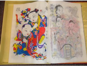 This beautiful boxed collection has woodcut New Year pictures. This is a traditional handicraft folk art from Yangjiabu of Weifang City in China. The technique originated at the end of the Ming Dynasty and the Weifang Yangjiabu Hengxingyi Gallery, where this is from, is known for its unique workmanship.