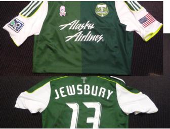 Autographed jersey with special edition pink ribbon patch worn by Jack Jewsbury during the October 12, 2011 Portland Timbers vs. Houston Dynamo Match.