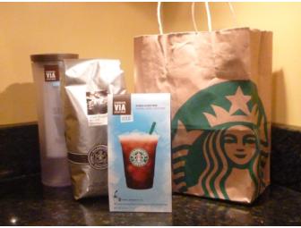This Starbucks Coffee Sampler includes one pound of Pike Place Roast Coffee, unground, one 5-pack of Iced Via Instant Coffee and one 20-oz Iced Via Tumbler.