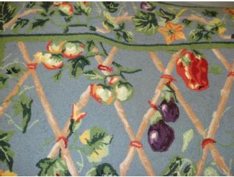 Bid now on this hand-crafted hooked wool rug. Features a blue color rug with fruit measuring 5'3" x8'3".