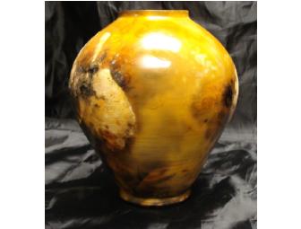 Bid now on this unique Kamdo pottery vase by Donna Kanich. The piece was fired in a kamado or outside oven similar to pit firing. Please note it is a decorative piece and the clay is not fired high enough to prevent leakage.