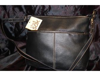 Bid now on this beautiful and versatile The Sak moclass leather black purse