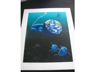 “Our Home Too II Dolphin” is a limited edition serigraph, by William "Schim" Schimmel, that is numbered and hand signed! Includes certificate of authenticity! Measures approximately 27 ½” W x 33 ½ H.
