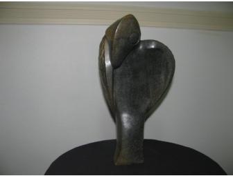 "The Thoughtful Vulture" is a sculpture carved from Brown Serpentine by Gedion Nyanhongo. Born in Zimbabwe, Gedion Nyanhongo has transformed everyday life into the enduring values that can help us all thrive in the global era of the 21st century through his sculpture.