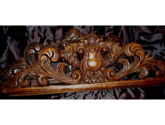 Bid now on this pair of "over the door" solid wood accent pieces featuring beautiful detail. The two are similiar in design, but slightly different in color finish. Great for over the door frame or on top of a cabinet.