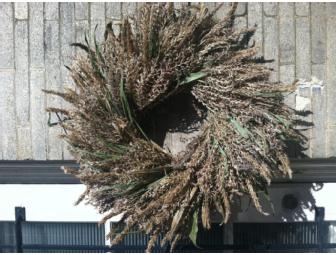 This is a lovely holiday wreath from Garners Produce in Warsaw, VA made with corn tassles. This freshly made wreath will all be one color by the time we send it to the winner!