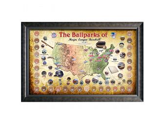Major League Baseball Parks Map 20x32 Framed Collage w Game Used Dirt From 30 Parks