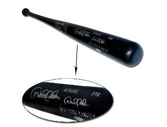 This is a Derek Jeter Game Model Bat, tailored to the exact specifications as the ones he uses on a nightly basis. The bat, black in color, proudly displays Jeter's name etched in the barrel and is hand signed in silver on the sweet spot. This collectible comes complete with a Steiner Sports Certificate of Authenticity.