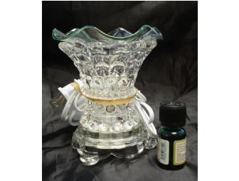 Bid now on this unique oil warmer featuring a decorative design made out of glass. Attached to the oil warmer is an AC power cord that you use to plug in to activate/warm the scented oil. Simply just place any scented oil you like in the glass dish and plug it in and let the calming and soothing aromas do the rest. This item is great for gift giving and is sure to look great in any room you place it in