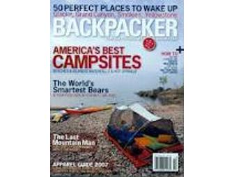 One year subscription to Backpacker Magazine. For over 35 years, Backpacker has been bringing the outdoors striaght to reader's doorstep, inspiring and enabling them to go more places and enjoy nature more often.