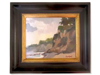 Beautifully framed oil painting of a secluded Malibu, California beach and cliffs. 12" x 10" (17 1.2" x 15 1/2 in framed)