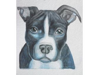8"x10" portrait of a blue pit bull. The piece is an original painting done using professional quality watercolors on heavy-weight, cold pressed paper.