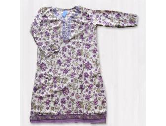 A beautiful jute tunic, made of 100% natural coconut fibers. Bright colors with purple trim, gold stamping and embellishments. Size 42 (M).