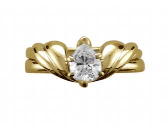 Ring Specs: This ring is a tiffany pear shape solitaire ring with 14k yellow gold wedding band wrap. It is I-1 in clarity and G-H-J in color.