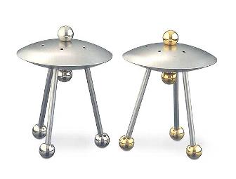 Handmade in Charlotte, VT by the Wallet Pen Co., Designed by BRMDesign.com  Hand-brushed stainless steel, Bright Chrome and classic 24k gold plate. They are designed to sparkle indefinitely, impervious to the rigors of intergalactic  travel and salt. Land them on your holiday table.