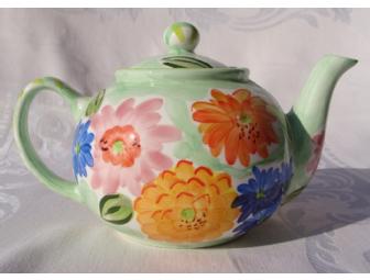 Brighten your table with this colorful flowered teapot! Approximately 6" tall.