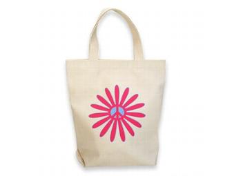 Tiny tote canvas bag with velcro closure with peace flower design 10" x 12" x 3" by Dogeared Jewels and Gifts. A perfect sized lunch bag.