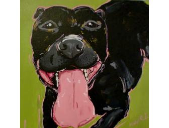 A few years back I painted a portrait of Sampson, my brother and sister-in-law’s pit bull and since then I have painted more than 80 dogs, 4 cats and 1 giraffe.