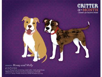 11x14 archival print illustrations of pit bulls from our Critter~a~Month Series.