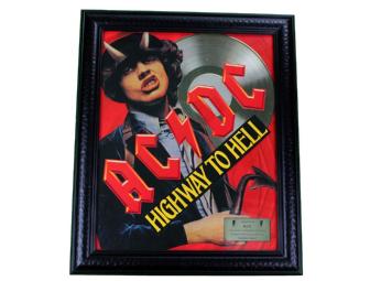 This is a HUGE Highway To Hell AC/DC Gold Record Award (approximately 20x25 inches!) presented to AC/DC. This is an incredible piece of music memorabilia and a must have for any AC/DC fan. Imagine hanging this up in your game room, office, guest room, or even bedroom! The engraved label reads: