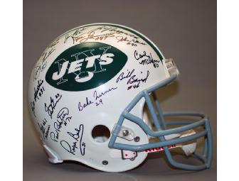 A brash Joe Namath predicted victory for his 17 point underdog team in 1969, and then went on to fame and glory by beating the Baltimore Colts and becoming the first AFL Team to win the Superbowl. This team is part of New York’s Sports History. The Helmet is signed by 25 players from that team, and guaranteed authentic by Steiner Sports.
