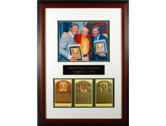 This is a candid photo taken at the 1974 Hall of Fame Induction. Casey Stengel, who passed away the following year, welcomes two great Yankees, Mickey Mantle and Whitey Ford as they are enshrined in Cooperstown. A copy of this photo hangs in Whitey's den!