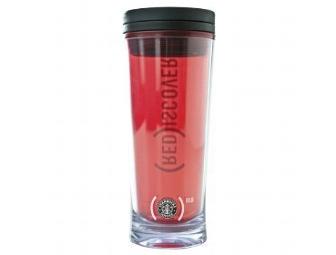 When you fill with your hot beverage, you'll see the word "(RED)ISCOVER" turn from black to white.
