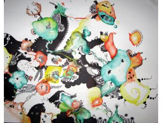 This painting was a first-time collaboration between two artists, Hillary Cooper (hi.coo@me.com) and Tyler Griffin (tylergriffinart@gmail.com), using watercolor first, rotating the poster every few minutes and then finishing with black sharpees for added designs.