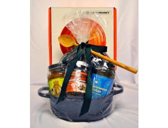 Elevate your culinary repertoire with this stylish Aubergine 3.5 quart Dutch Oven by the renowned French brand Le Creuset. Basket includes an assortment of Williams-Sonoma baking and braising sauces awaiting your special touch.