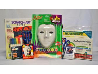 Release your creative flair with this assortment of high quality art supplies. Included are oil pastels, paint markers, scratch art and other craft sets. Something for everyone!