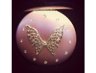 Hand-set genuine Swarovski Crystal Butterfly Compact Mirror.