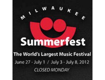 The winning bidder for this item will receive Eight (8) Summerfest 2012 General Admission Tickets and Two (2) Parking Passes.