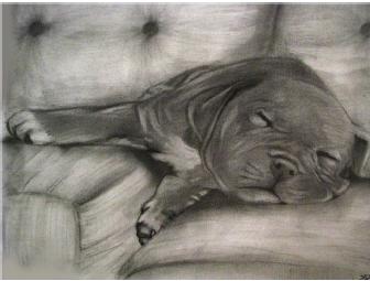 Graphite Portrait depiction of baby pit bull - 14" x 17" by Sarah Mary Ibrahim