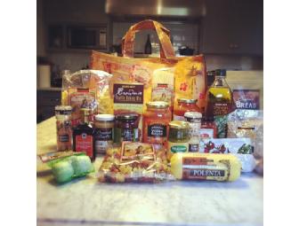 All your favorite Italian Trader Joe's products in one bag! 3 kinds of Organic Pasta, Organic Polenta, Baslamic vinegar, Crushed Garic, Vodka Sauce, Pesto, Bread Crumbs, Seasoning, Pine Nuts, Olives, Sundried Tomatoes, Olive Oil, Lemon Pepper, Fresh Garlic and Brownies for Dessert! All in a reusable tote.