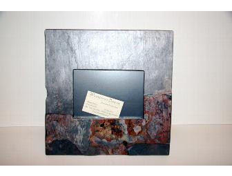 Bring a unique, rustic look to your home decor with this slate picture frame by Waterdance Designs of Colorado Springs. Frame measures 11.5"x11.5" with 4.5"x6.5" opening for photo. Frame includes backing to display either hanging or standing. Value: $55