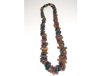 This hand-strung necklace measures 25'' long and is made entirely of amber nugget beads. Dress them up or down; this versatile necklace will work with almost any look! Value: $125