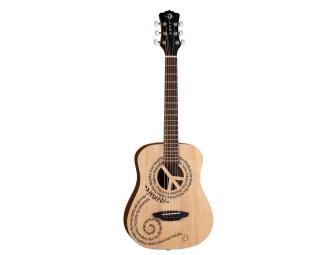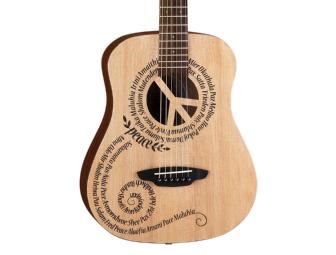 The Peace design on this Safari travel guitar is a very special one for us here at Luna as it embodies a philosophy we hold dear. A laser-cut peace sign at the sound hole is surrounded by the wordpeace in different languages forming a graceful continuum across the soundboard.