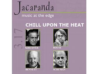 A pair of tickets to the March 17, 2012 Jacaranda concert, Chill Upon The Heat, at 8:00 pm at First Presbyterian Church in Santa Monica.