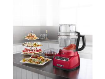 KitchenAid 13-Cup Food Processor, featuring the first-ever externally adjustable slicing lever in a countertop food processor. Easily adjust from thick to thin slicing. Optimized speeds help process soft to hard foods. The 3-in-1 Ultra Wide Mouth™ Feed Tube accommodates a variety of sizes of food.