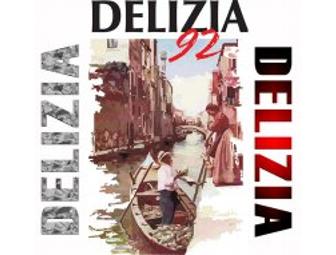Delizia 92, home of great Italian food, gives you a gift certificate of $100 to use in the restaurant. With menu items including pasta, soups, veal, seafood, and pizza, Delizia 92 offers entrees to satisfy any tastebud!