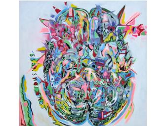 Originally from Houston, Crow currently lives and works in Tucson, Arizona. Crow uses themes such as philosophical questioning, life and death, and happiness as his focus. Images of faces, spirals, and words are a few of the motifs he uses to visually represent looking within one’s self.