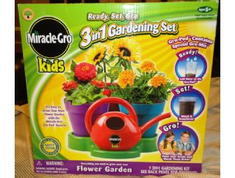 3 pots, 3 disks, 3 gro-pod containers with grow mix, display tray, watering can, sunflower seeds, Dreamland red zinnia seeds, French marigold seeds, 3 plant stakes, planting stick, grow chart and instructions.